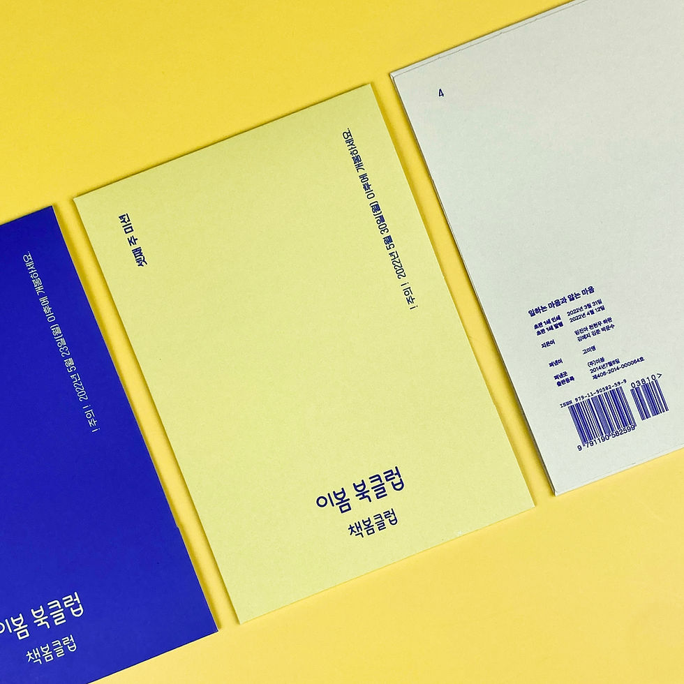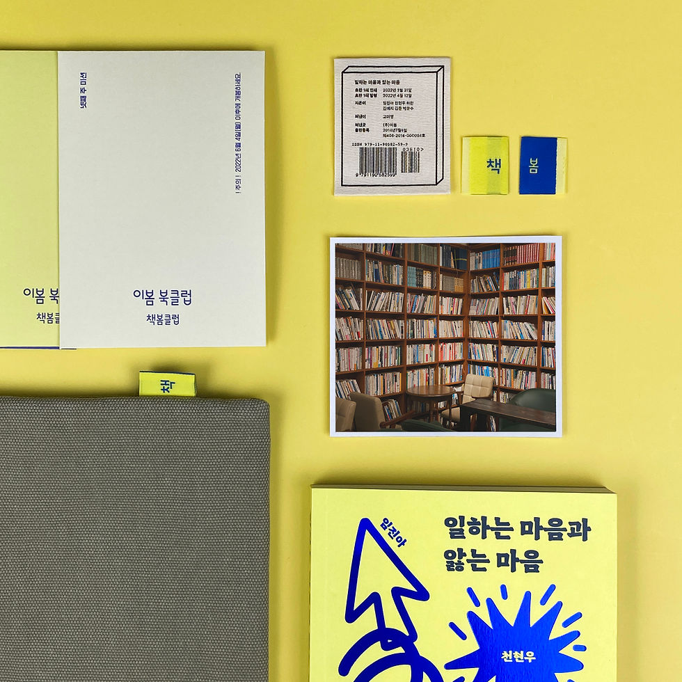 CPHMay 9, 20221 min readUpdated: Jul 12, 2022이봄출판사 책봄클럽 첫 번째 페이지 『일하는 마음과 앓는 마음』책 파우치미션지 4 종Design_ CINEPINHOUSEClient_이봄출판사